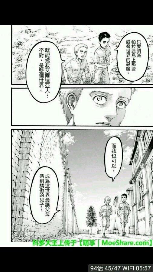 「只要消灭帕拉迪岛上那些威胁世界的恶魔,就能拯救艾尔迪亚人……不对,是整个世界」