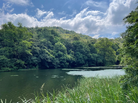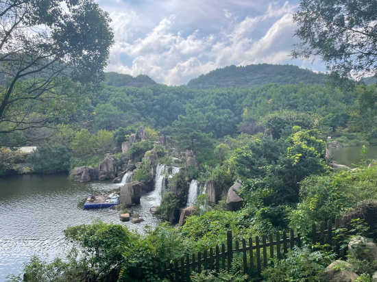 白马涧者,姑苏城西三十里之山水形胜也。其东南西三面环山而北豁,中有龙池凤潭饮马池三水焉,乃天赐之良苑也。传春秋吴王养马之地,山为栅栏而水可饮马,因白马居多,乃称白马涧。又传东晋高僧支遁曾放白马于此。不得而知其来历,然此处山水融合之美可堪游玩也。自北门入涧,直行数十步,乃入一绿荫长廊,上盖侧附绿植以遮阴,下铺石板以健行。途不远却有六座微型拱桥,其名曰:同心,翠岑,驻屐,锄烟,眠绿,寿星,其下有小溪潺潺,其侧有纷纷扰扰之娱乐,烧烤。既出,豁然以开,见有水成池,中有圆池,周有水以围之。均称之为饮马池。南有巨石焉,上有水垂流而下,传声于远近四周。侧有石阶,健步而上,未几,见一潭如镜,水边有石,周围有山。静水如镜平,奔水若凤飞,此潭雅称凤潭。再上,见一立石,上刻“龙池”,乃乾隆御笔。乾隆六下江南,曾驻足于此以观山水形胜。