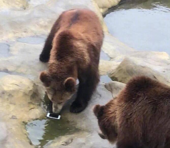 游客误扔苹果手机投喂棕熊,园方回应:熊无大碍手机坏了