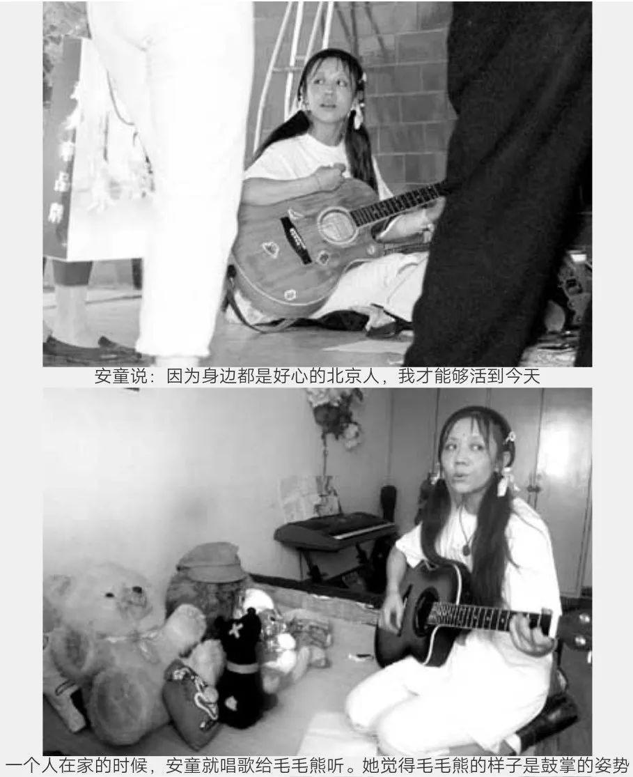后来电视台专门做了一期的采访,这样大家才得知这个女孩儿生下来就是一个可怜的孩子,早产被养父母收养,9年之后就开始自己独立生活。她的腿是因为当初得了白血病,治疗后留下的后遗症,现在她依然患有再生障碍性贫血。2001年刘安童就带着自己的吉他在天桥和地铁通道里卖唱,吸引了很多的人。