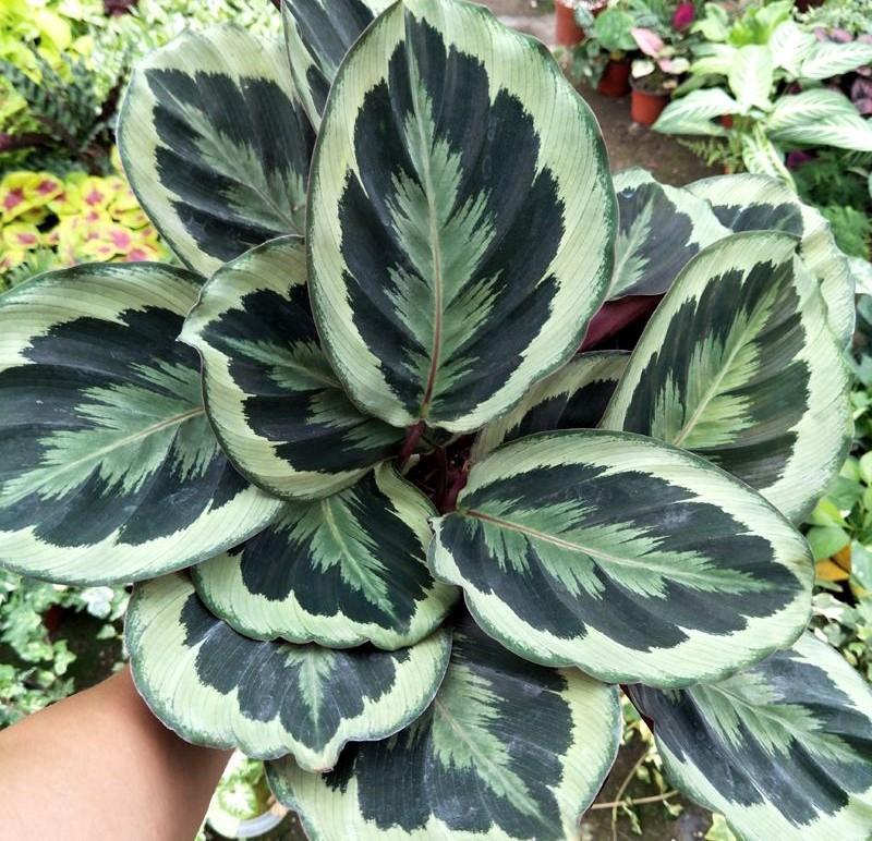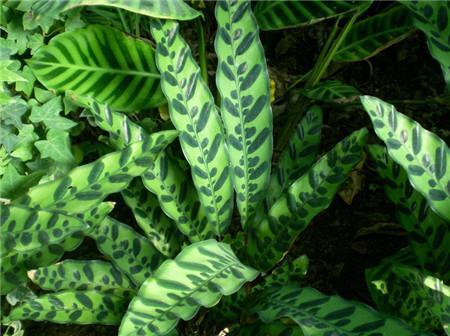 孔雀竹芋叶子上面的斑纹像孔雀羽毛。