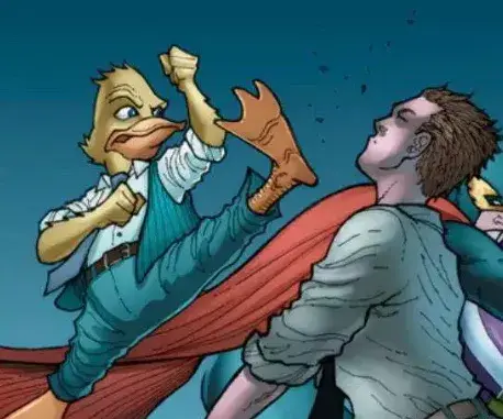 8、霍华德怪鸭 霍华德怪鸭本是鸭子世界的居民,因遭遇意外被困地球。 霍华德会一种鸭子世界高超的武术,这使他拥有超强近身格斗能力。除此之外,霍华德怪鸭拥有很多顶尖装备,火焰喷射器、弹射器、防身战甲、威力巨大的枪械。 电影《银河护卫队1、2》中均出现怪鸭彩蛋。