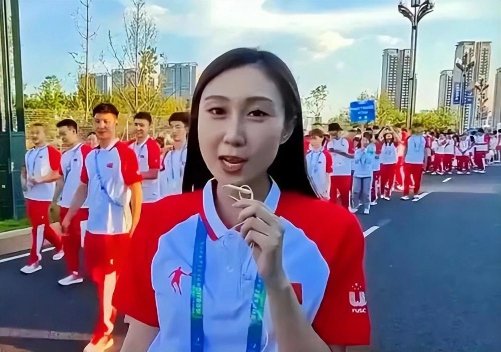 据了解,水亦诗是今年才入职央视体育频道的新人记者。在成都大运会开幕后,水亦诗以央视体育记者的身份出镜报道。她穿着红色运动服,打扮简单而别致,展示了她的气质。她拥有乌黑的秀发、白皙细腻的皮肤和精致的五官,站在人群中格外引人注目。