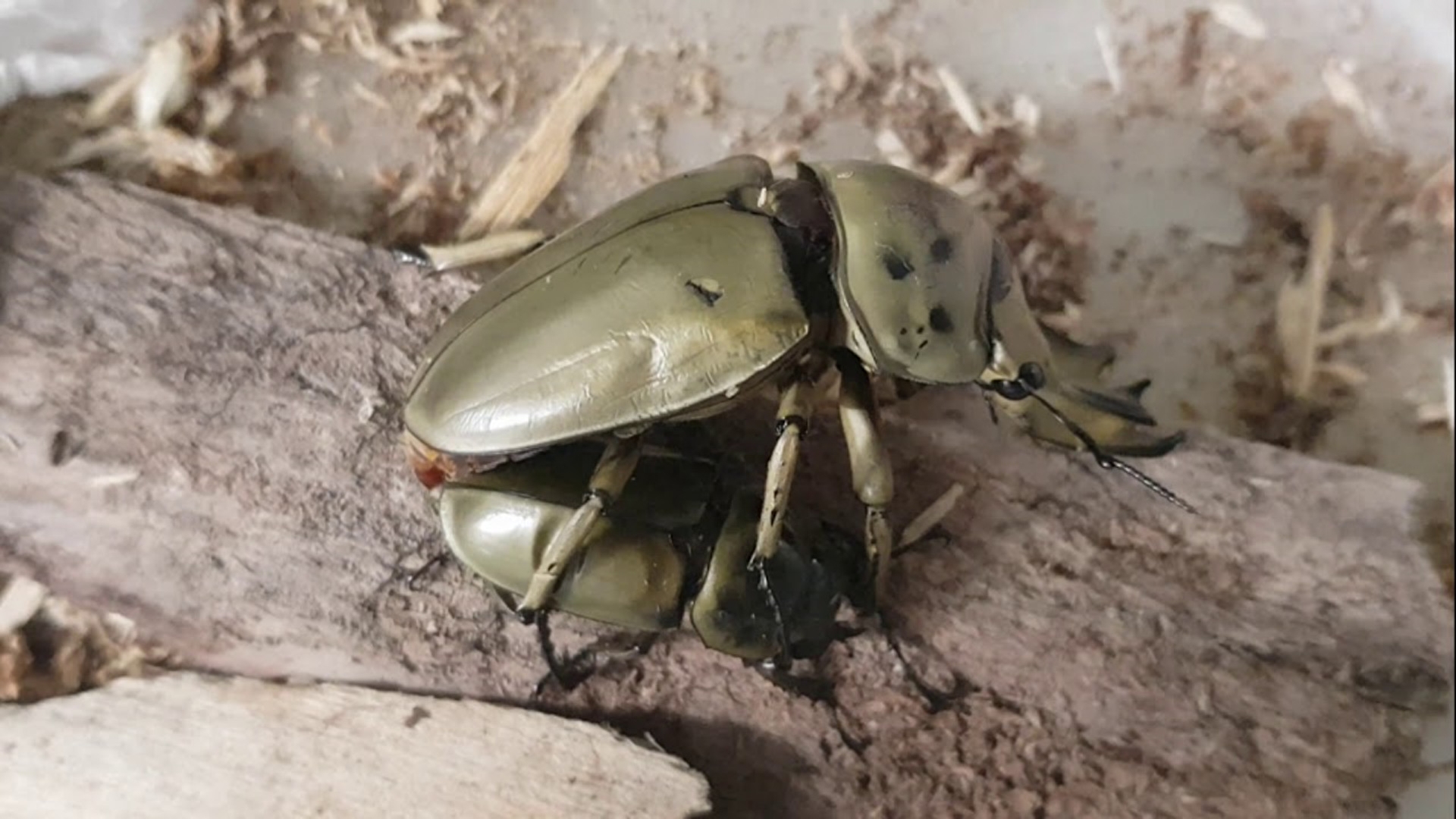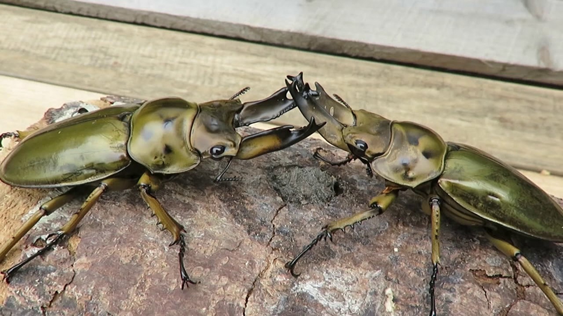 黄金鬼锹甲可以说是海关查获的老朋友了,在每年查获的众多昆虫当中占比不小,它们会藏在盆栽等地方企图蒙混过关。你可能要问了,黄金鬼锹甲到底是什么物种,为啥这么“受欢迎”?又为什么被列为违规物品?这种昆虫喜欢生活在海拔很高的热带雨林当中,小时候靠着啃食树叶长大,海关查获的黄金鬼锹甲大多产自离中国很近的印度尼西亚、缅甸等地方。在甲壳虫当中,黄金鬼锹甲的体型可以说是数一数二的,有的体长超过了八公分,雄虫和雌虫的差距很大,像极了爸爸带着女儿。