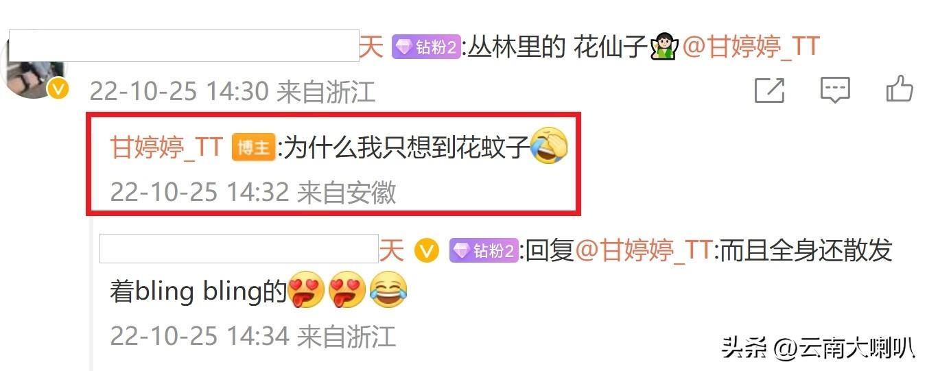 这句话在部分网友听来可能觉得挺幽默,但不一定知晓其中的含义。实际上了解西双版纳的人都知道,但凡去过这个地方的人,都会对那些无处不在的大花蚊子留下深刻印象。特别是像甘婷婷这样跟着剧组在西双版纳长驻的人,估计已经被大花蚊子咬过无数次,所以满脑子都是这些家伙的影子,也算是一种心理阴影了。还好在甘婷婷看来,属于西双版纳的记忆,一切都是美好的。