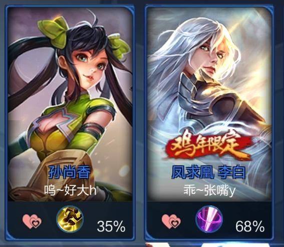 第三组昵称,这一组就更污了,有点少儿不宜。李白的游戏昵称是“乖~张嘴y”,看起来是喂东西,但是看了孙尚香的昵称你就不会这么认为了,孙尚香昵称是”呜~好大h“。唯一看不懂的是他们名字后面的字母是什么含义。