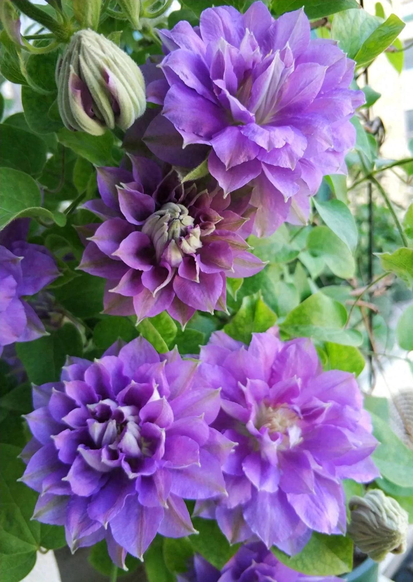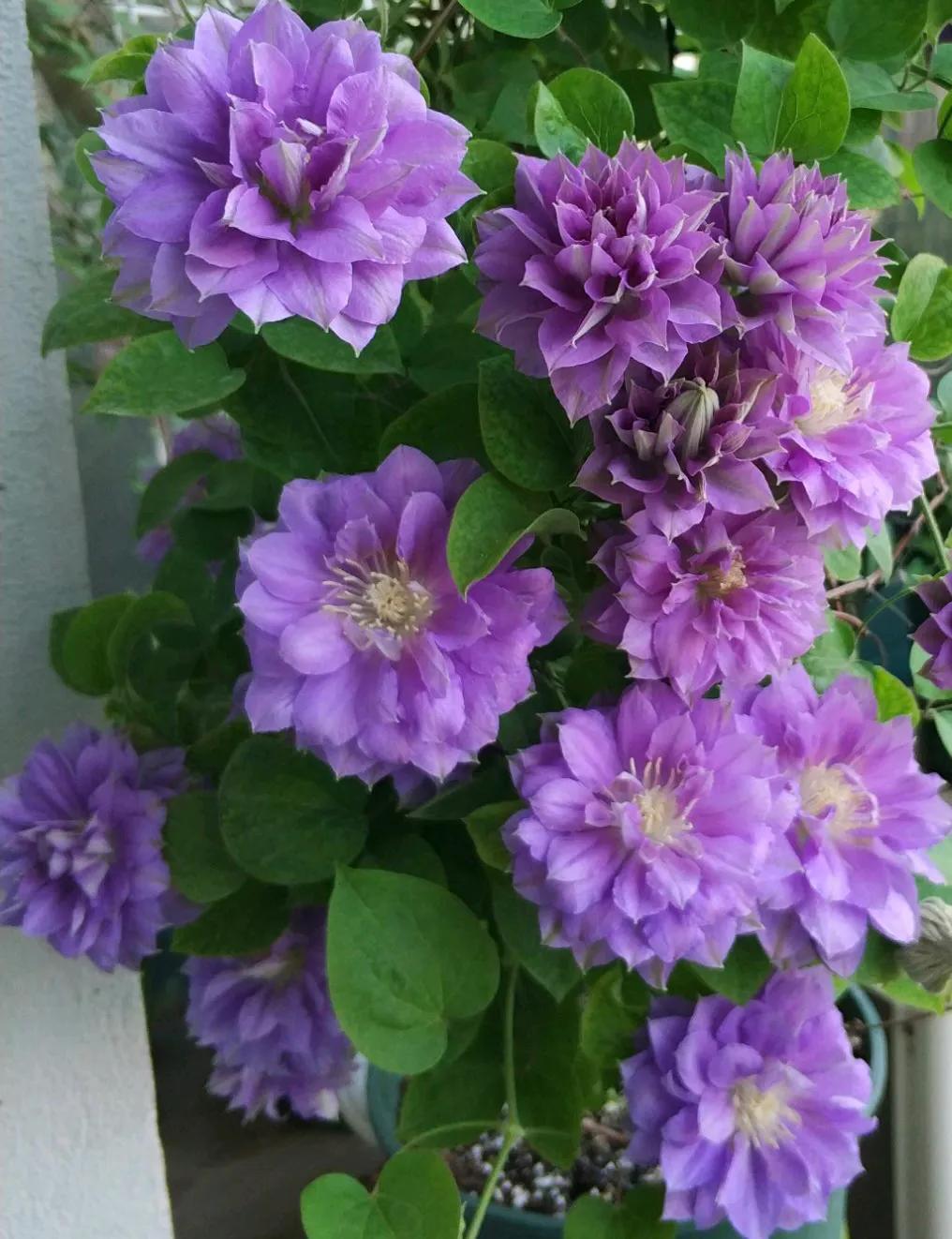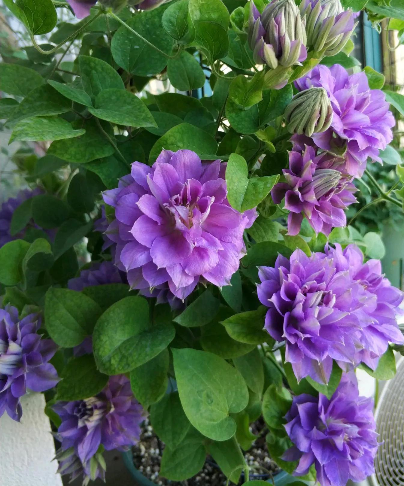 円空,是一款美丽梦幻的铁线莲品种,花朵是蓝紫色,重瓣大花品种,花瓣层层叠叠非常的漂亮,花朵直径可达15公分,花期主要集中在4-11月,花期特别长复花性好花量特别大,円空开花时真的有种梦幻空灵之美。