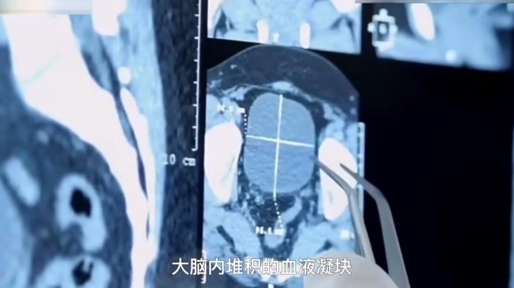随着时间推移,患者大脑血液也开始凝聚成血块。