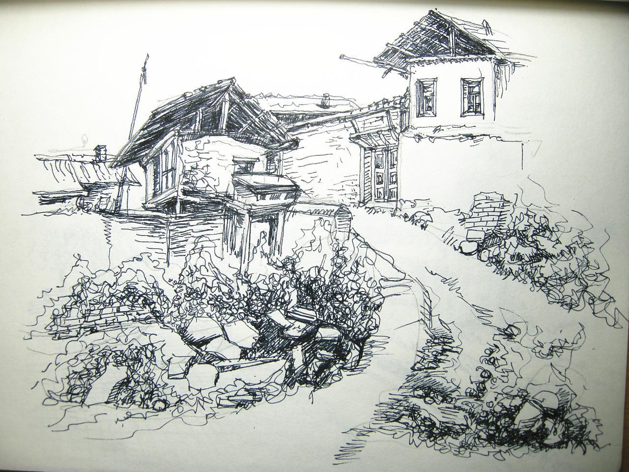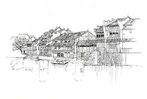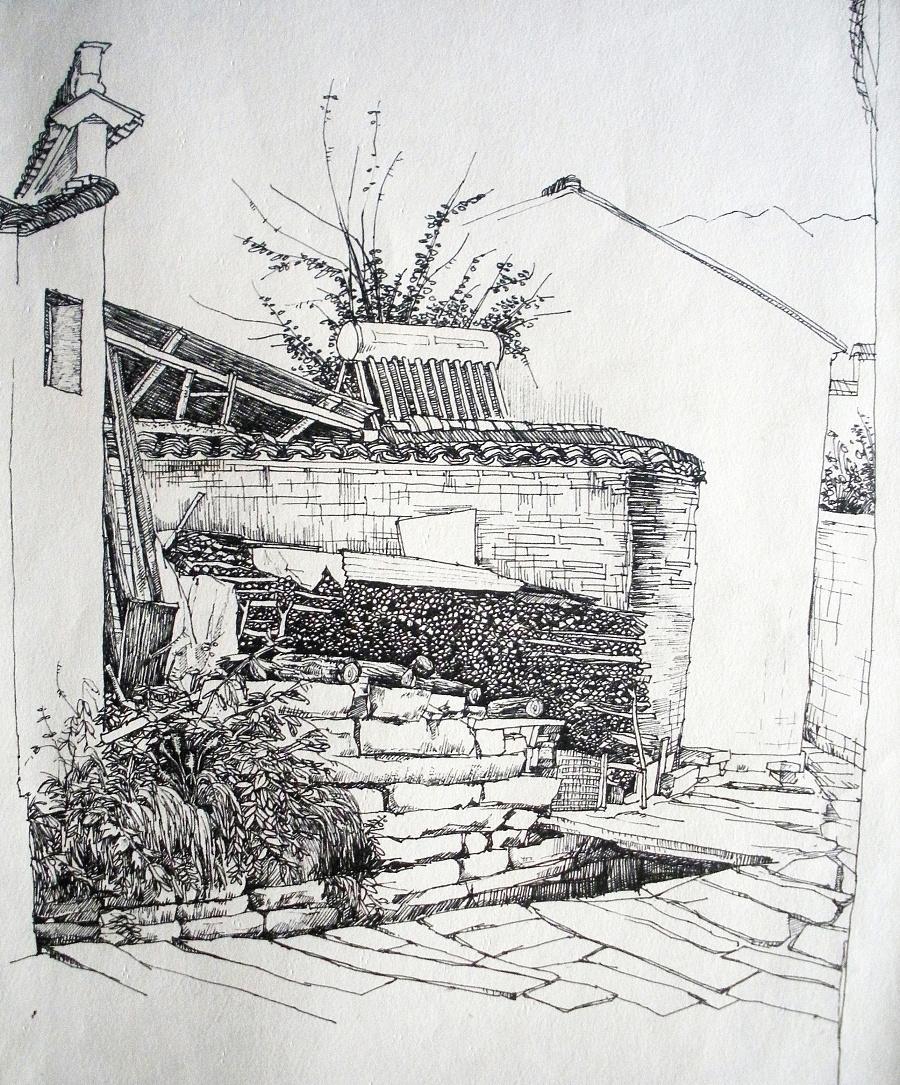 那些好看的古镇,风景,树木,速写实例先临摹开始,喜欢的收藏!