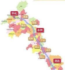 广清怀高铁起于湖南沪昆高铁怀化南站,终于广东广州北站,借助国家八纵之一的大动脉呼南高铁,在永州站向南延伸,全长600公里,设计时速350公里,其路线为:怀化-邵阳西-永州-蓝山-连州-阳山-英德-清新-广州。