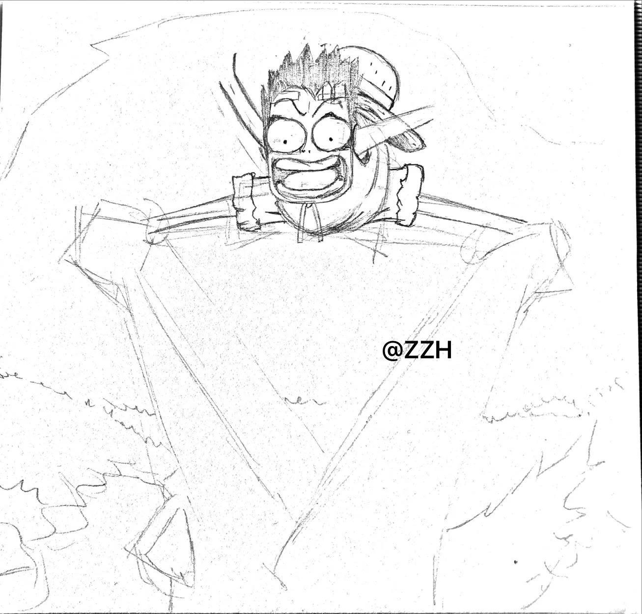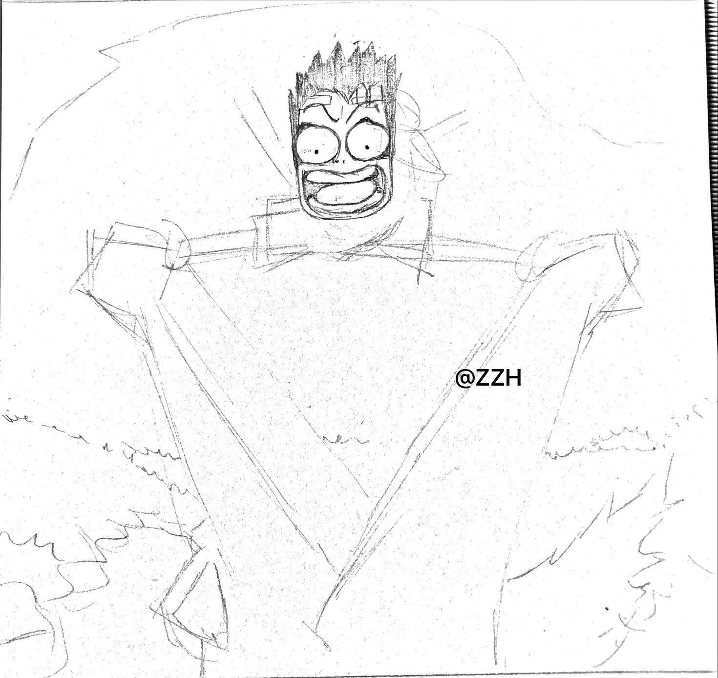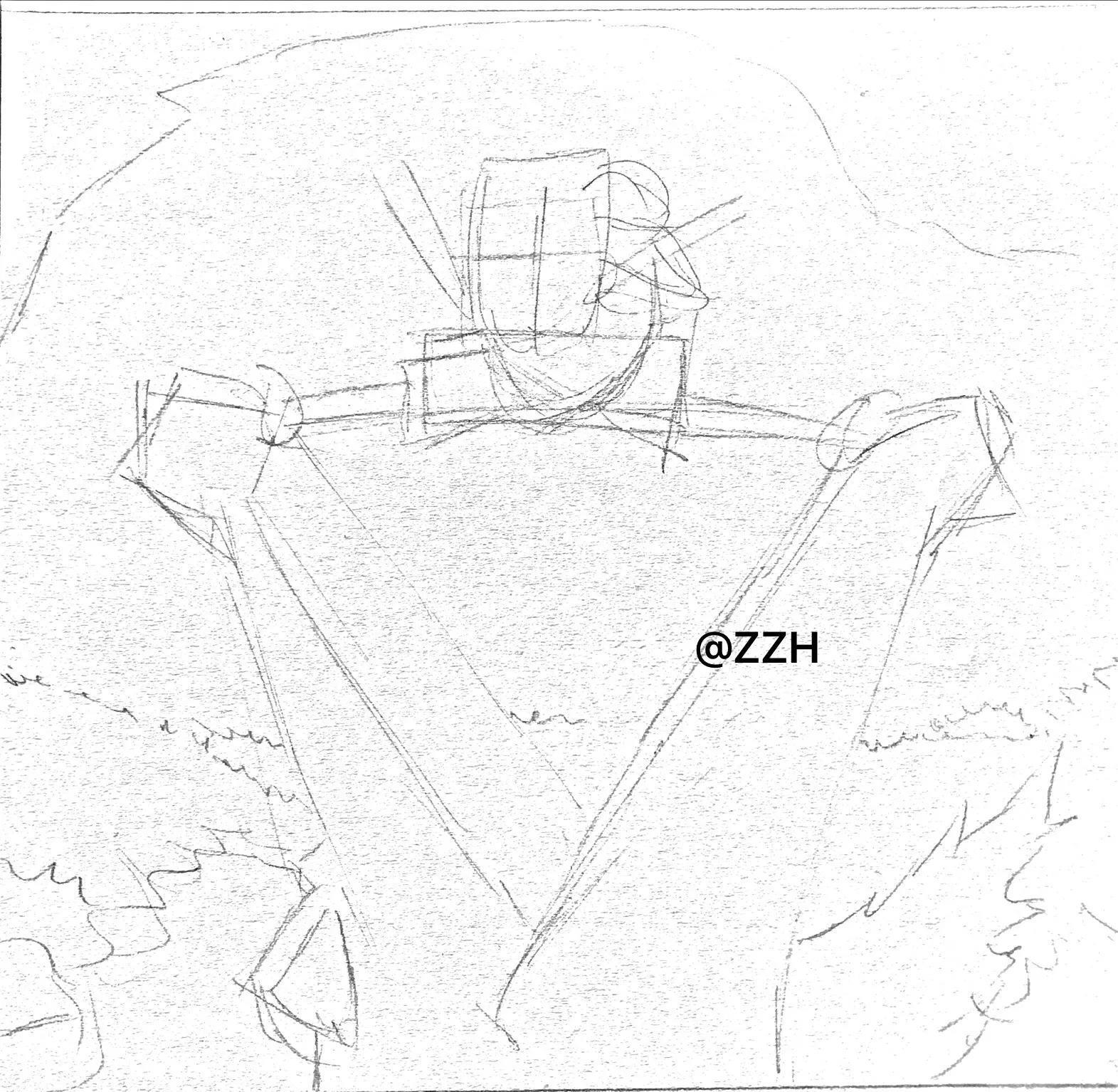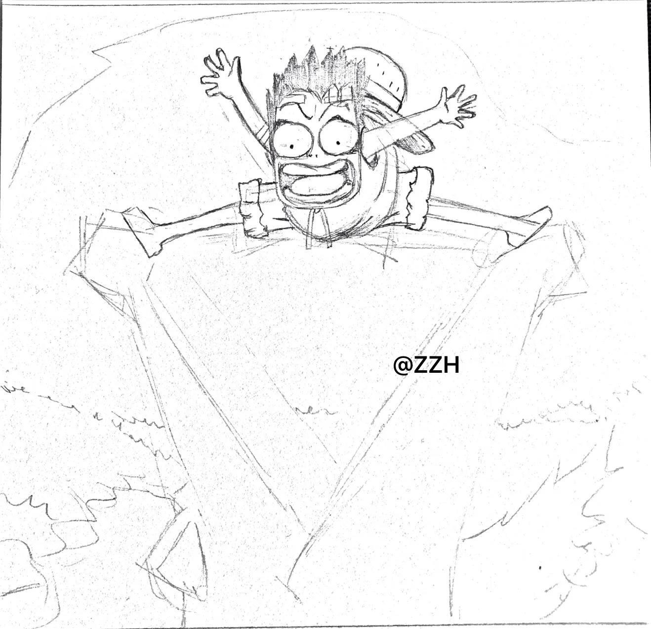 第二步:在白色纸上打稿子,先画出路飞的整体轮廓,
