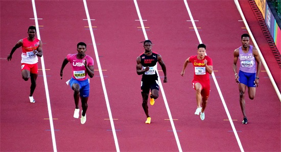 当日,2022世界田径锦标赛男子100米预赛在美国俄勒冈州尤金市举行。