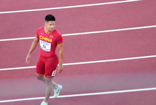 7月15日,中国选手苏炳添在男子100米预赛后。最终,苏炳添晋级半决赛。 新华社记者 吴晓凌 摄