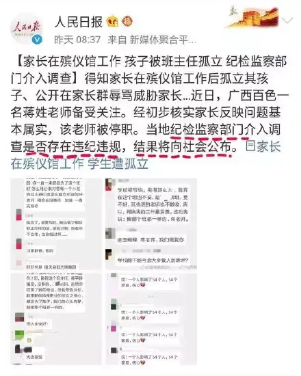 歧视家长在殡仪馆工作,百色一老师被重罚