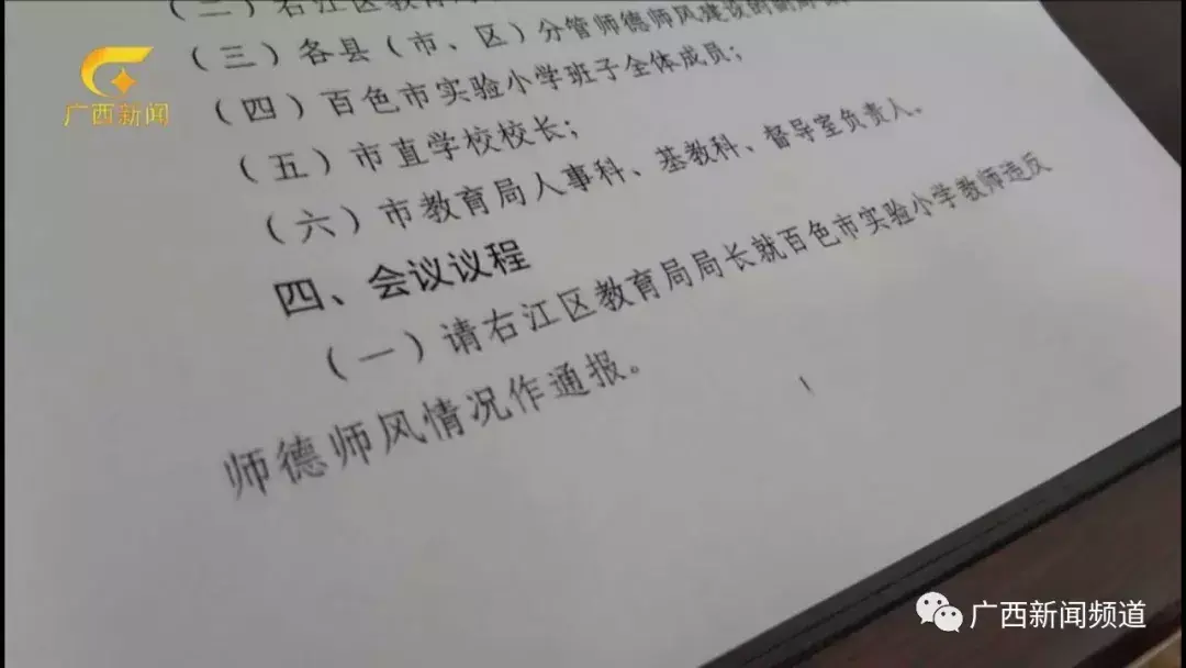 1月31日上午,百色市教育局发布了《关于召开全市加强师德师风建设工作会议的紧急通知》。通知中,除了通报这起事件外,还强调将在全市范围内开展师风师德教育纪律整顿工作。