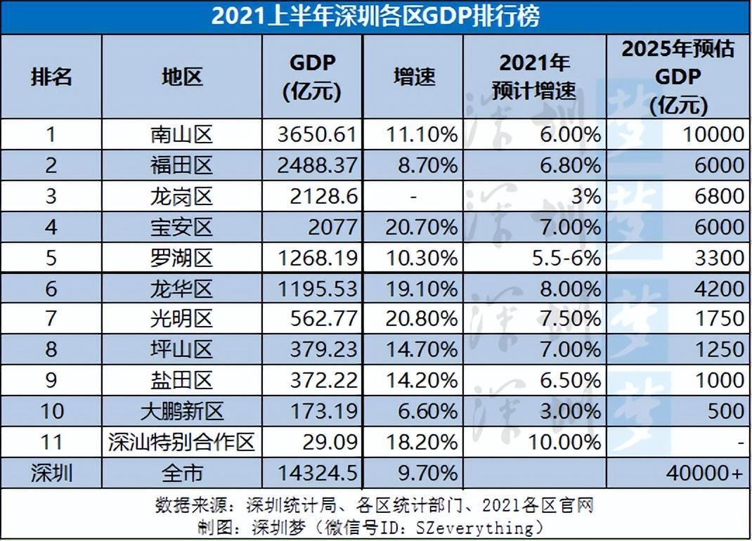 深圳各区GDP“成绩单”:坪山区第八,福田落后南山,光明区第七