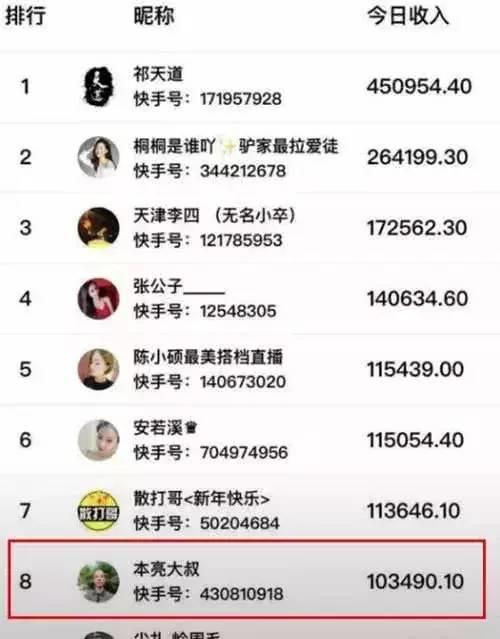 快手第一网红本亮大叔的真实收入,一天收入比得上白领年工资